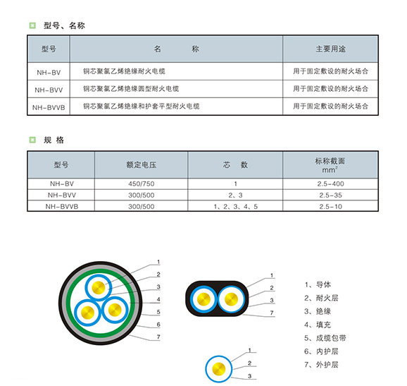 注:以上型號的聚氯乙烯絕緣電纜(電線),本廠還可以生產(chǎn)阻燃型、耐火型(B系列),在以上型號前面加上Z (A.B.C.D)。