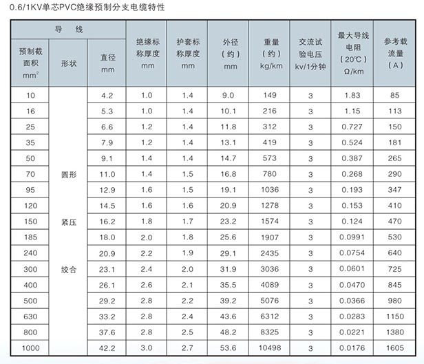預(yù)制分支電纜得我主要技術(shù)性能及外形尺寸